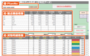 専用のExcelマクロファイルを使用することで、輸送機器や貨物情報を1つのデータにまとめ、VM-Cloudへ一括で取り込むことができます。