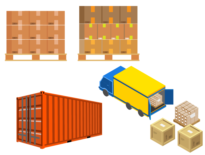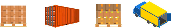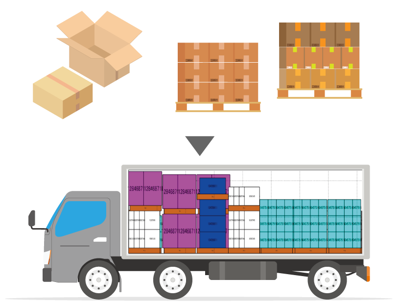 異なるサイズの貨物をパレットに混載する積み付け計算まで、