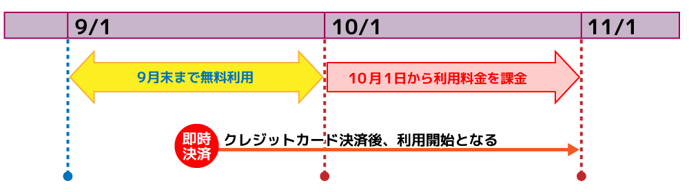 お申込み月は利用料金無料。翌月分から利用料金の課金が必要となります。